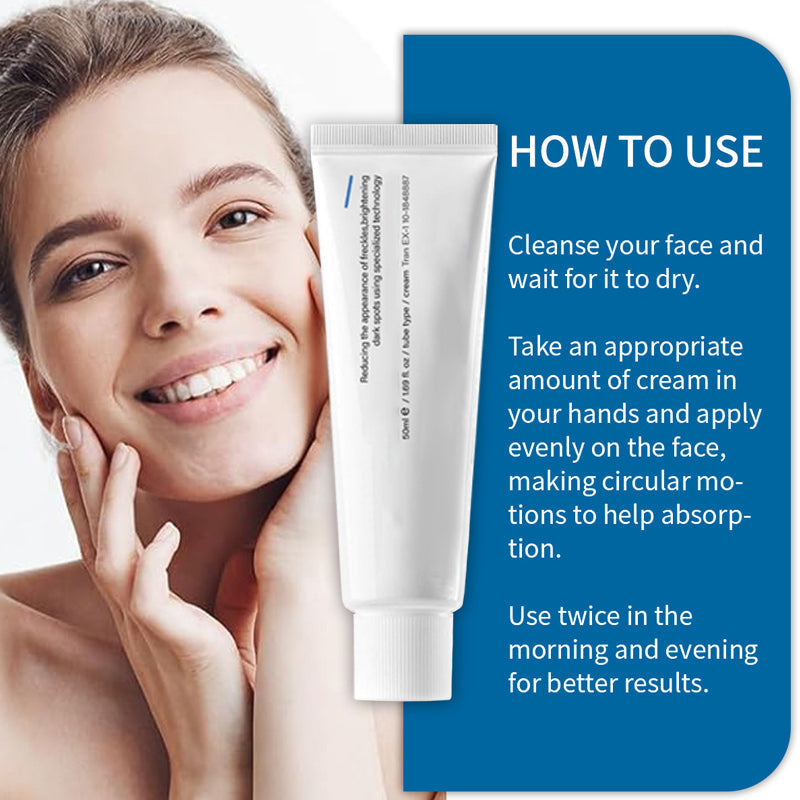 CORRECTION PUISSANTE DES TACHES BRUNES - Formulée à base d'acide tranexamique, cette crème cible et atténue l'apparence de l'hyperpigmentation, des taches brunes et des taches solaires, pour un teint plus clair et plus uniforme.