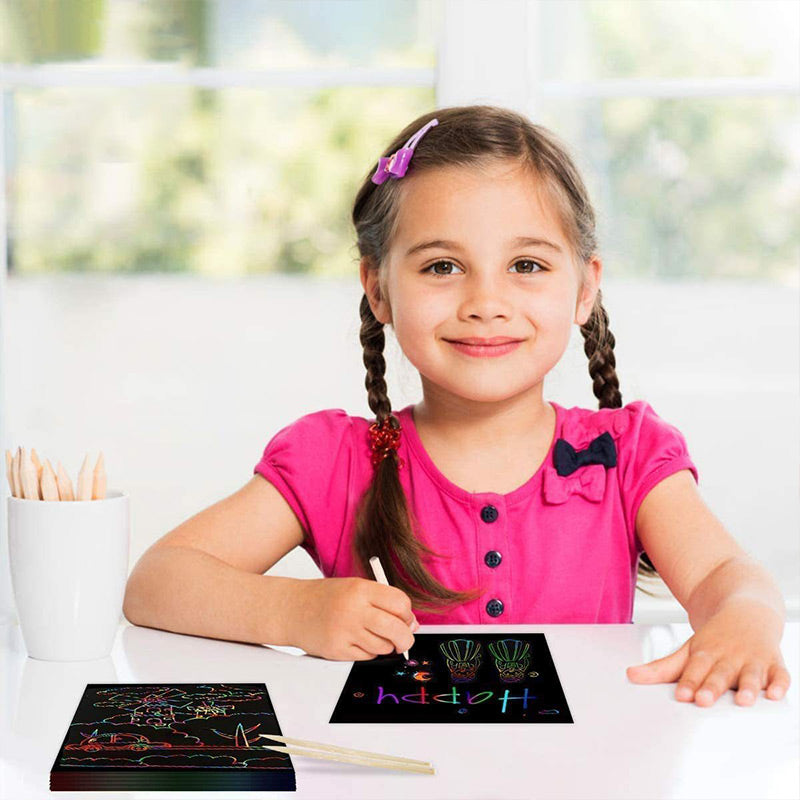 🌈Le Cadeau à Gratter Parfait : Ce bloc de croquis arc-en-ciel convient comme cadeau d'anniversaire et cadeau de fête pour les garçons et les filles de 3 ans et plus. Cadeau parfait pour les enfants à Noël, le Jour de l'Enfance, la Saint-Valentin, la Fête des Mères, la Fête des Pères, Halloween et Pâques pour développer les intérêts et compétences en peinture.