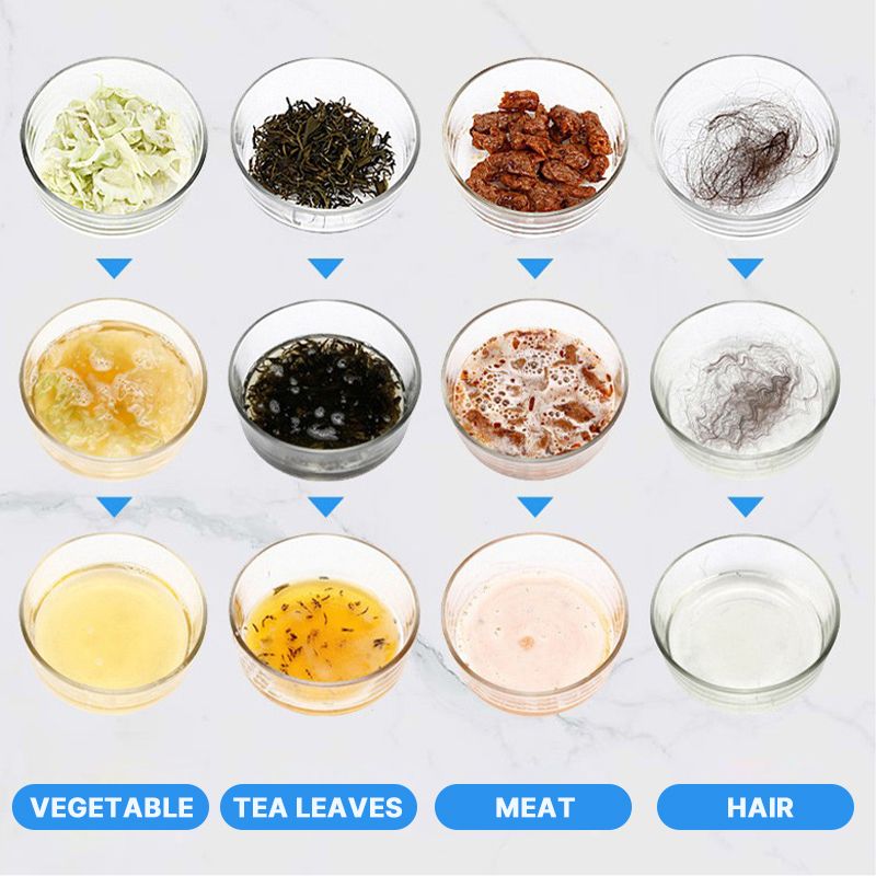 * Fonction puissante : il peut dissoudre rapidement les blocages de tuyaux tels que les cheveux, le papier, les résidus de savon, les légumes, les fruits, les particules alimentaires, la graisse, la viande et les matières organiques.