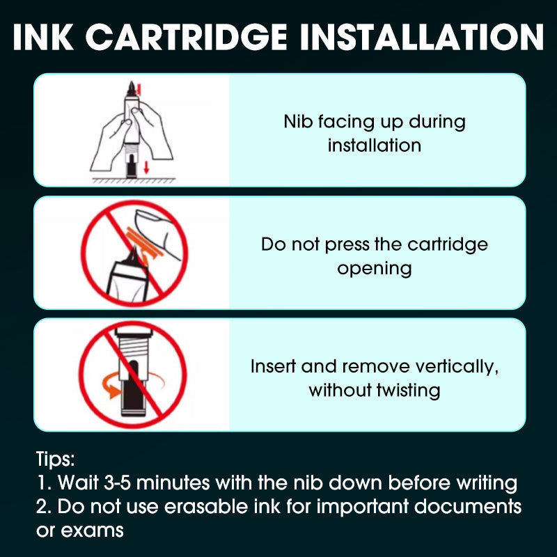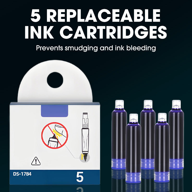 5 CARTOUCHES D'ENCRE REMPLAÇABLES : Livré avec cinq cartouches d'encre supplémentaires, permettant une utilisation prolongée sans besoin de recharges fréquentes. Parfait pour les étudiants, les professionnels et les écrivains.