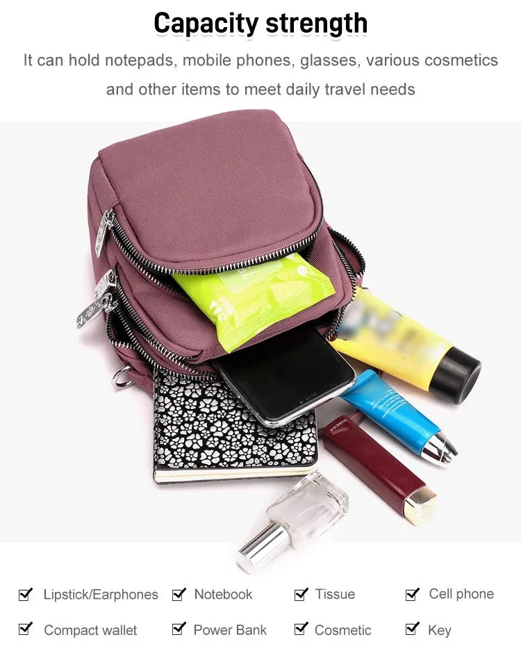 Pratique: Ce petit sac coudé dispose d'une poche zippée qui empêche les objets de tomber, est antivol et offre une bonne performance en matière de sécurité.