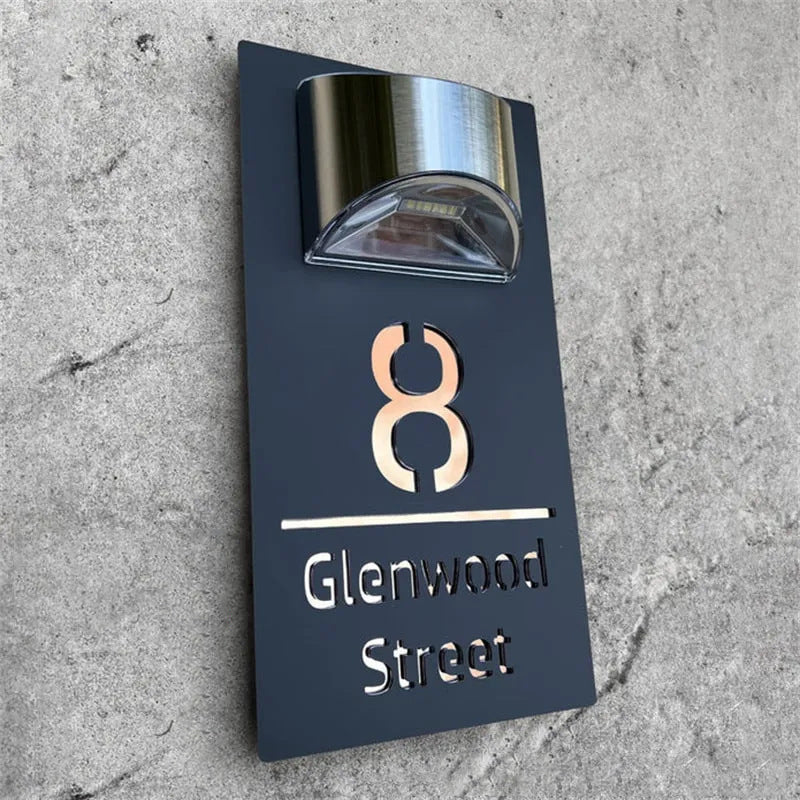 ÉNERGIE SOLAIRE EFFICACE : Notre panneau de numéro de rue fonctionne entièrement à l'énergie solaire, assurant un éclairage écologique de vos numéros de maison la nuit. Il allume automatiquement les lumières au crépuscule et les éteint à l'aube.