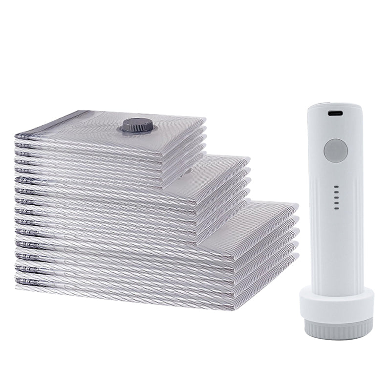 Le pack comprend : 1 jeu de sacs de rangement sous vide pour le voyage et une pompe portable